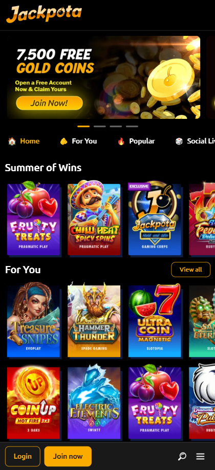 Jackpota operates as a social casino, which means that gold coins are for entertainment purposes only and cannot be exchanged for cash. Always check the “Terms and Conditions” and “Support” sections for the latest information.