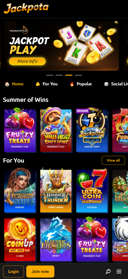 Jackpota Casino is a web-based social casino offering an exciting variety of games without the need for downloads. Operated by SILVER SOCIAL OPERATIONS LIMITED, it delivers a high-quality gaming experience accessible via desktop or mobile browser.