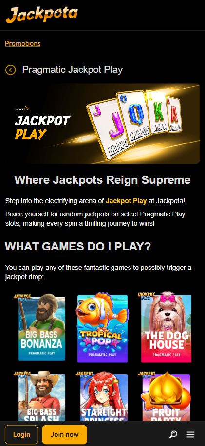 See detailsJackpota Casino is committed to protecting players’ personal information through secure encryption protocols and strict data handling policies. All account details, including login credentials and payment information, are stored safely and never shared with unauthorized third parties. The platform adheres to industry privacy standards, ensuring your gaming experience remains both safe and confidential at all times.